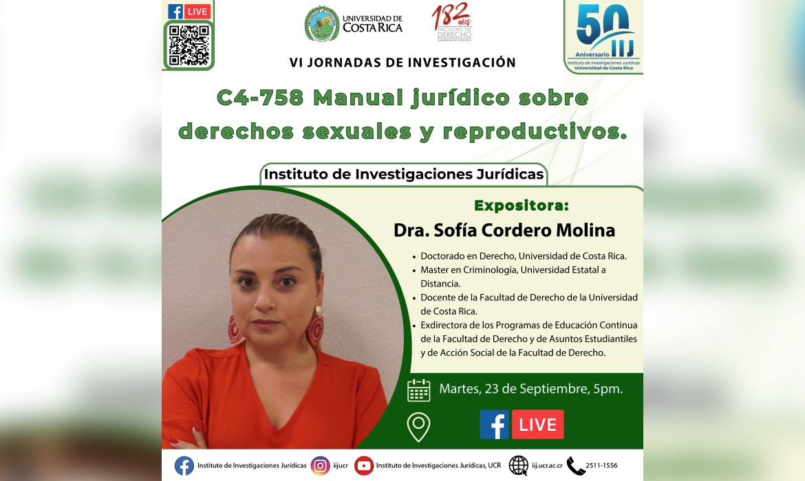 C4-758 Manual jurídico sobre derechos sexuales y reproductivos 2025-09-23 5:00 pm Facebook Live. https://www.facebook.com/iijucr