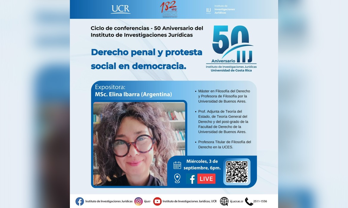 Ciclo de conferencias: Derecho penal y protesta social en democracia 2025-09-03 6:00 p.m. https://www.facebook.com/iijucr/