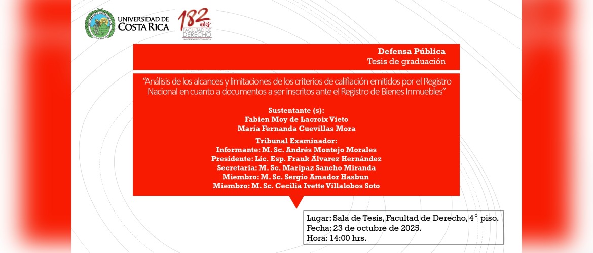 Defensa Pública de Tesis: "Análisis de los alcances y limitaciones de los criterios de calificación emitidos por el Registro Nacional en cuanto a documentos a ser inscritos ante el Registro de Bienes Inmuebles"