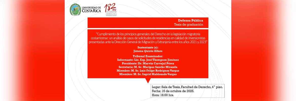 Defensa Pública de Tesis: "Cumplimiento de los principios generales del Derecho en la legislación migratoria costarricense: un análisis de casos de solicitudes de residencias en calidad de inversionistas presentadas ante la Dirección General de Migración y Extranjería entre los años 2021 y 2023"
