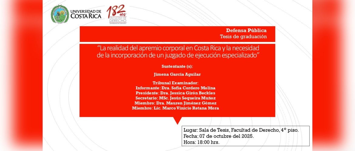 Defensa Pública de Tesis: "La realidad del apremio corporal en Costa Rica y la necesidad de la incorporación de un juzgado de ejecución especializado"