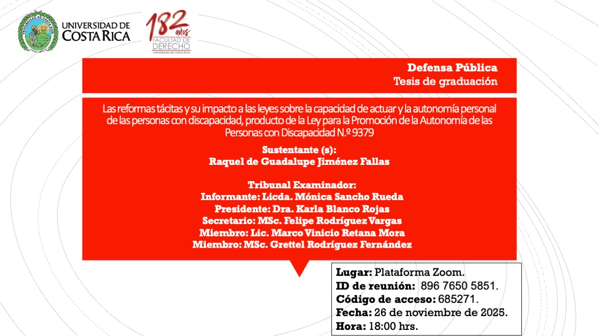 Defensa Pública de Tesis: Las reformas tácitas y su impacto a las leyes sobre la capacidad de actuar y la autonomía personal de las personas con discapacidad, producto de la Ley para la Promoción de la Autonomía de las Personas con Discapacidad N.º 9379