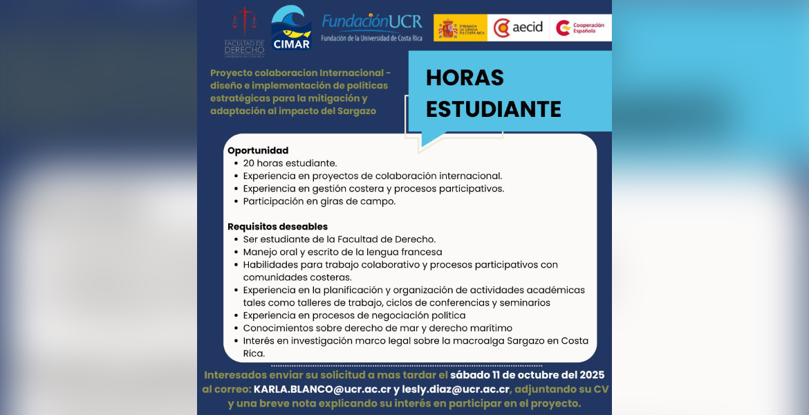 Horas Estudiante - Proyecto colaboracion Internacional - diseño e implementación de políticas estratégicas para la mitigación y adaptación al impacto del Sargazo