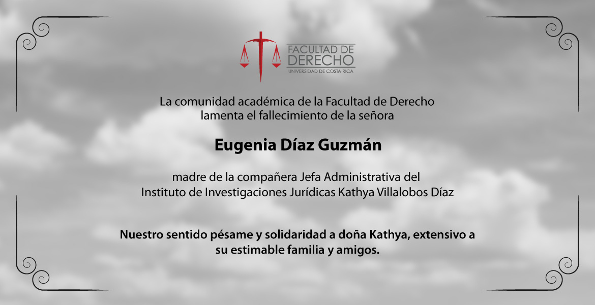 La comunidad académica de la Facultad de Derecho lamenta el fallecimiento de la señora Eugenia Díaz Guzmán Noticias - 10/11/2025 Enviado por admin el 10 November 2025